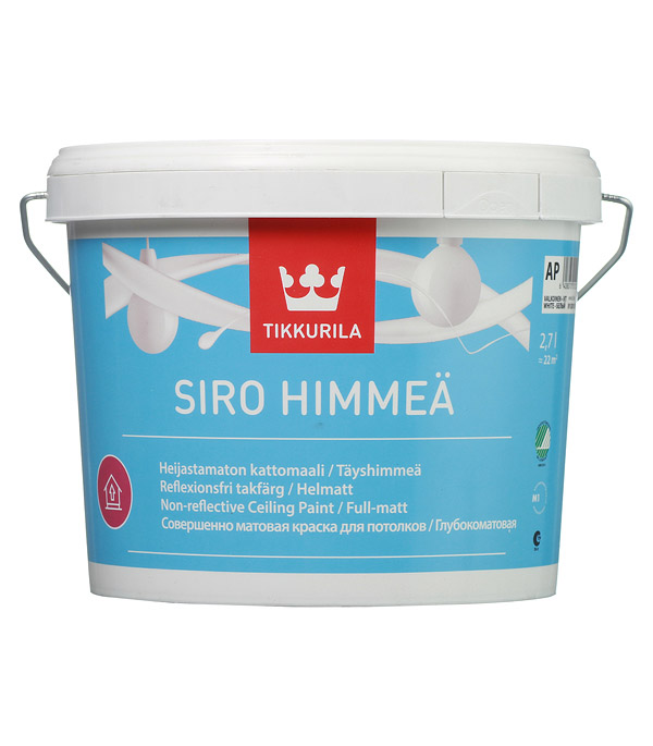 Краска водно-дисперсионная для потолка Tikkurila Siro Himmea (Сиро Мат) белая 2,7 л