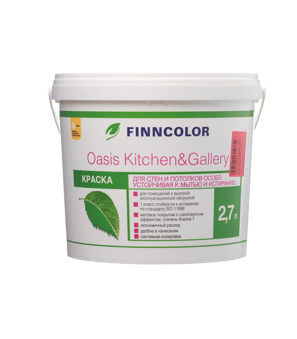 Краска водно-дисперсионная Finncolor Oasis Kitchen&Gallery 7 моющаяся основа C 2,7 л