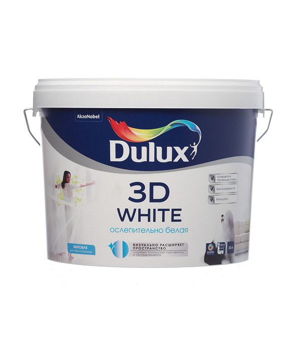 Краска водно-дисперсионная интерьерная Dulux 3D White белая основа BW 10 л