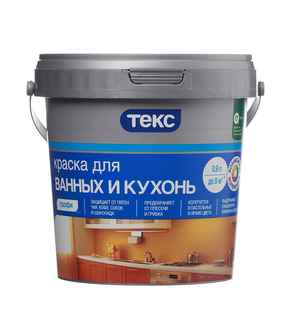 Краска водно-дисперсионная Текс Профи для ванных и кухонь моющаяся основа D 0,9 л