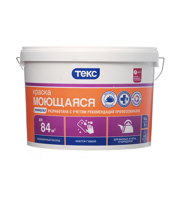 Краска водно-дисперсионная Текс Универсал моющаяся белая основа А 14 кг