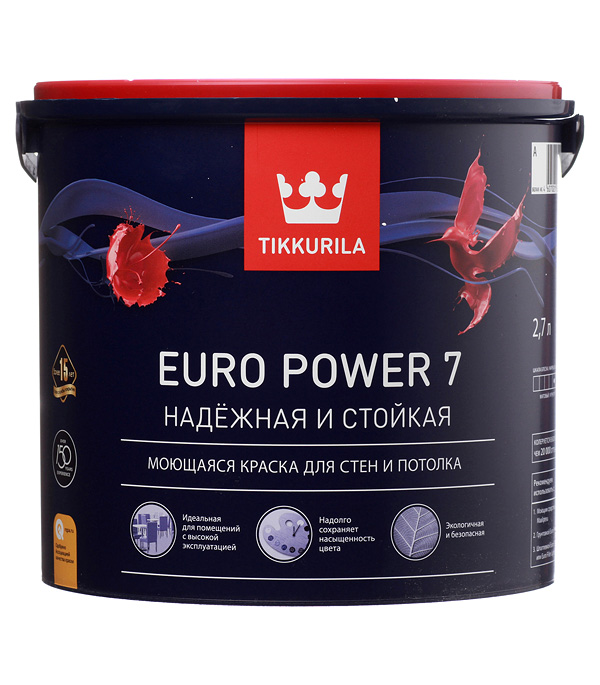 Краска водно-дисперсионная Tikkurila Euro Power 7 моющаяся белая основа А 2,7 л