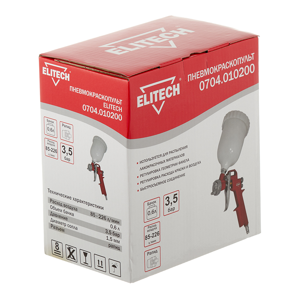 Краскопульт пневматический Elitech (0704.010200) верхний бачок