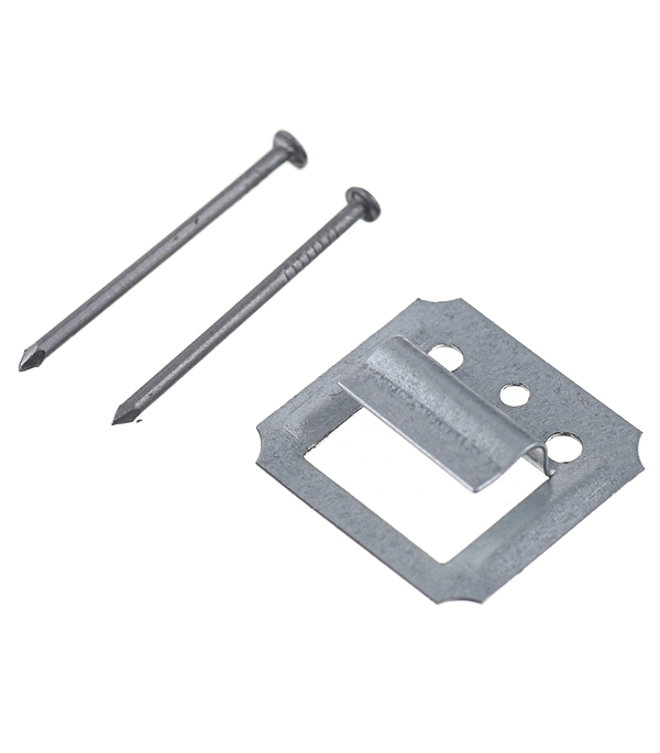 Предназначен для быстрого, надёжного и невидимого крепления вагонки, легкого имитатора бруса. Представляет собой специальную скобку из оцинкованной стали в комплекте с гвоздями (1,4 х 25 мм). Количество упаковок в транспортной коробке: 50 шт.