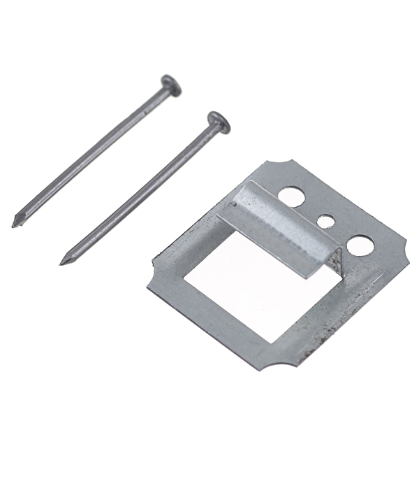 Предназначен для быстрого, надёжного и невидимого крепления имитатора бруса, бревна, блок хауса.rnПредставляет собой специальную скобку из оцинкованной стали в комплекте с гвоздями (1,4 х 25 мм).