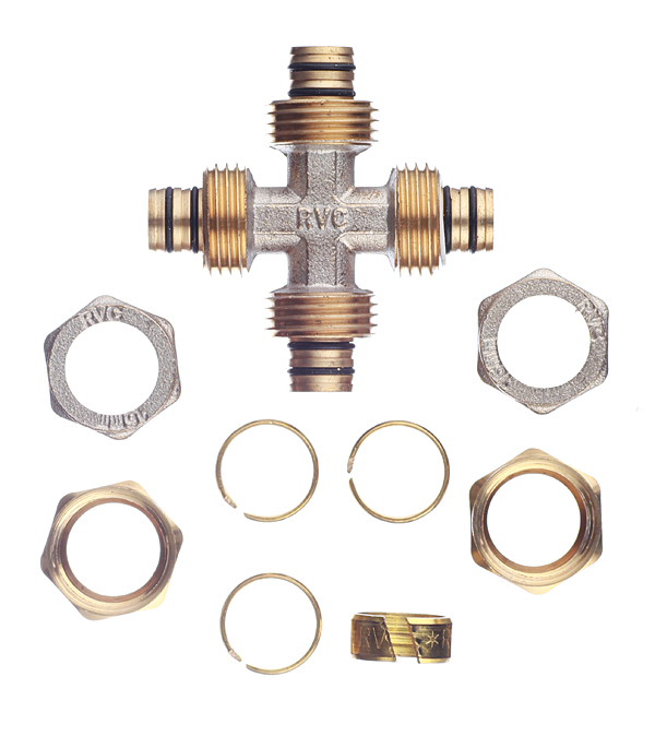 Предназначена для разветвления направления потока воды в системах водоснабжения и отопления на три направления. Используется для соединения металлопластиковых труб диаметром 16 мм методом обжима.