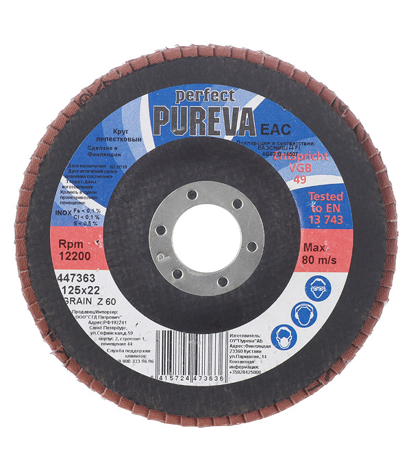 Круг лепестковый по металлу/древесине Pureva (447363/3636) 125х22,2 мм P60