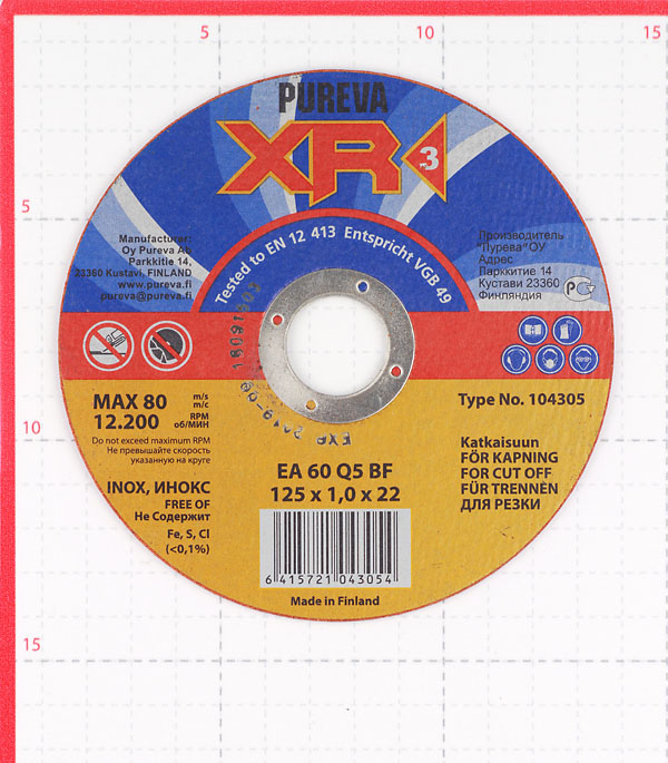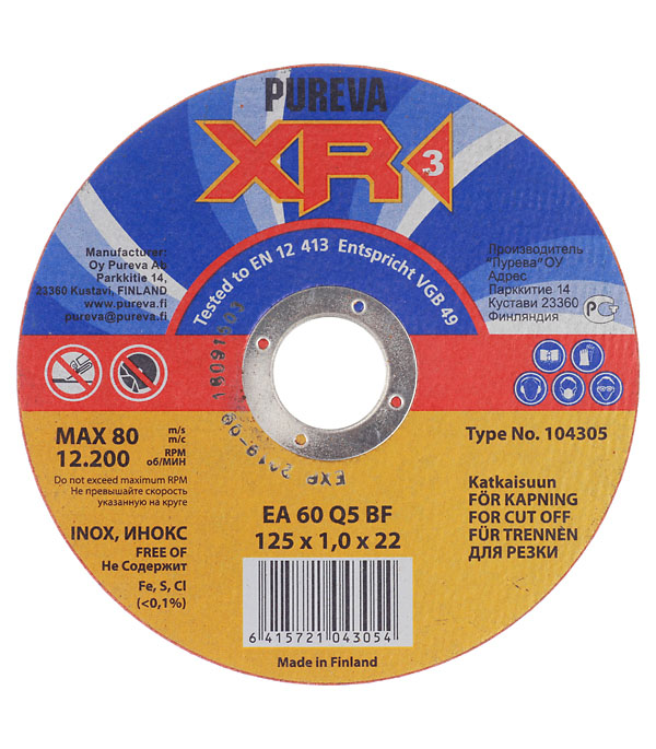 Круг отрезной по нержавеющей стали Pureva 125х22х1 мм