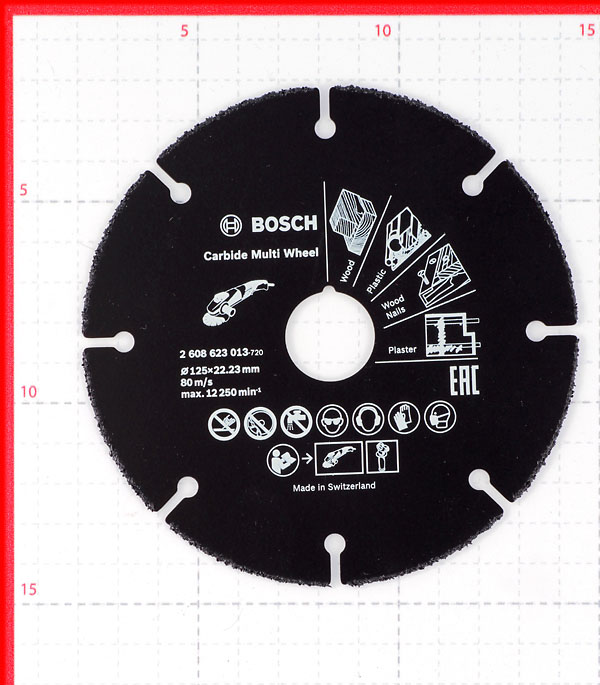 Предназначен для резки древесины (с гвоздями), пластика, гипсокартона, медных труб. Тонкий корпус и демфирующие прорези обеспечивают скорость реза без деформации режущей кромки. Устанавливается на шлифмашину угловую.