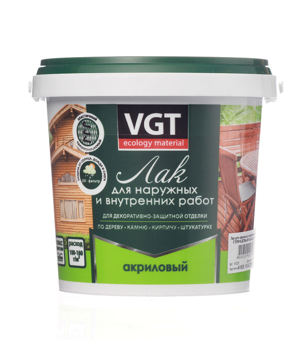 Лак акриловый для наружных и внутренних работ VGT бесцветный 0,9 кг глянцевый