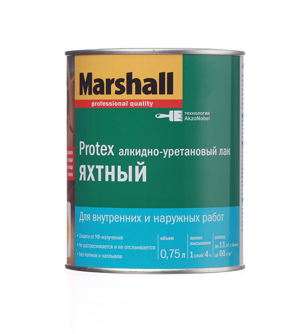 Лак алкидно-уретановый яхтный Marshall Protex бесцветный 0,75 л полуматовый
