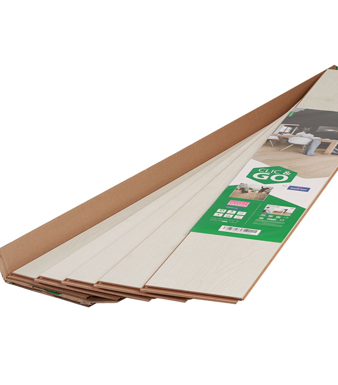 Ламинат Clic&Go by Quick-Step 33 класс дуб шелковый белый с фаской 1,311 кв.м 12 мм