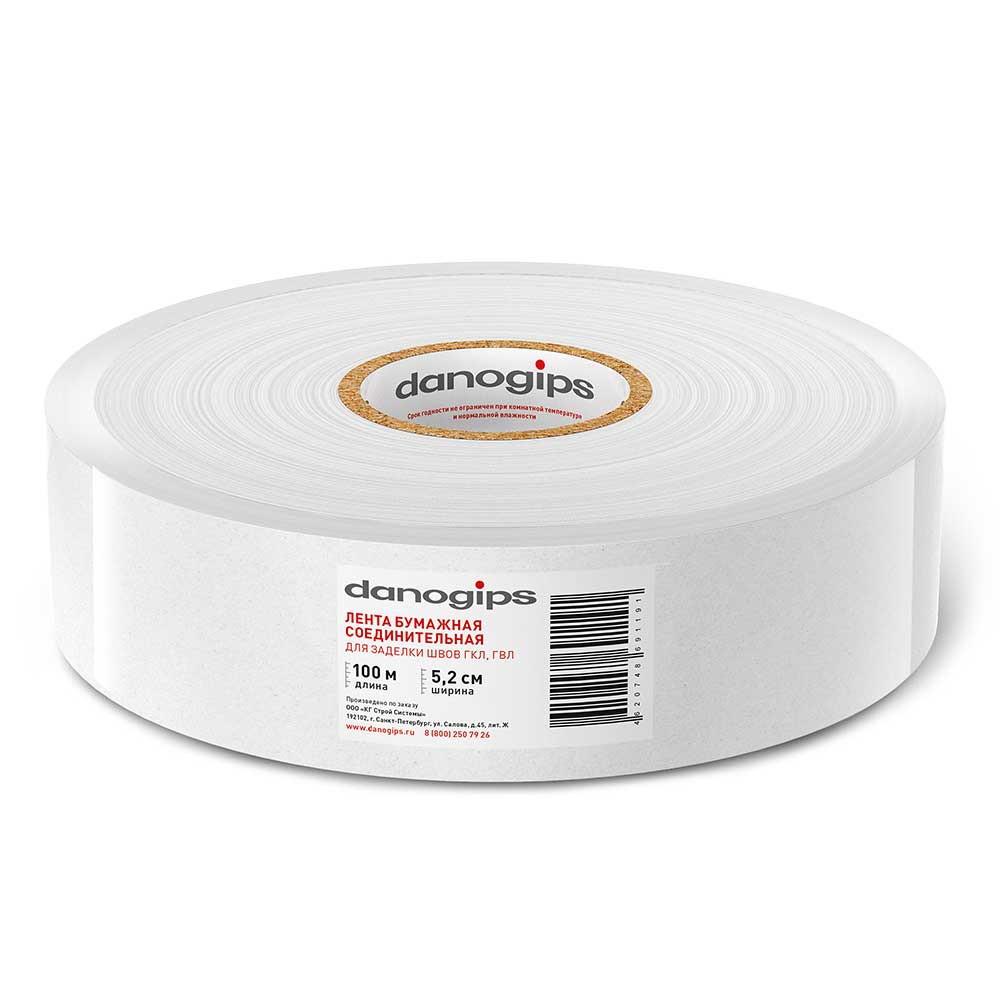 Используйте бумажную соединительную ленту Danogips при обработке швов и внутренних углов гипсокартонных конструкций (с утонченной кромкой). rnРекомендуется накладывать ленту на специализированную шпатлевку Fill&Finish Light Danogips, так как она обладает высокой адгезией и низкой усадкой.rnОбработка швов гипсовых плит с утонченной кромкой и наложение бумажных лент (ручной способ):rn1. Нанести узким шпателем шпатлевку на стык.rn2. Приложить ленту и без нажима зафиксировать ленту шпателем.rn3. Распределить шпатлёвку под лентой от середины к краям, удалить излишки клеевого слоя и выровнять поверхность.rn4. Оставить до полного высыхания шпатлевки.rn5. Далее широким шпателем нанести слой шпатлевки поверх лент. Этот слой должен быть шире предыдущего на 5-10 см с каждой стороны.rn6. После полного высыхания можно приступить к сплошному выравниванию поверхности.