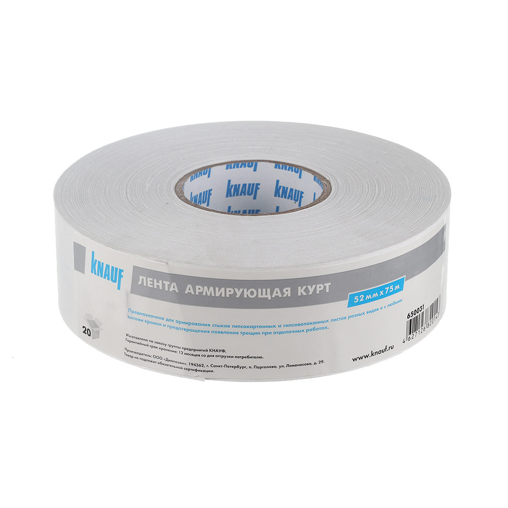 Лента армирующая КНАУФ-Курт – это армирующая лента, изготовленная из белой специальной бумаги с армирующими синтетическими волокнами. Предназначена для армирования стыков гипсокартонных и гипсоволокнистых листов разных видов и с любыми типами кромок и предотвращения появления трещин при отделочных работах.
