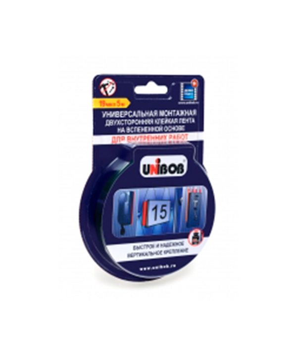 Лента клейкая монтажная для внутренних работ Unibob двусторонняя 19 мм 5 м