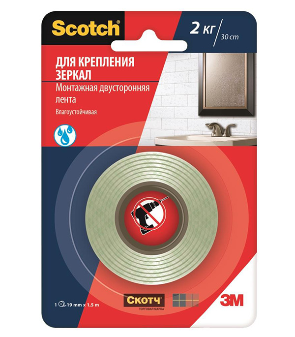 Лента предназначена для крепления зеркал и других предметов на кафельной, окрашенной, металлической, пластиковой поверхностях. Пружинящая вспененная основа помогает улучшить контакт с поверхностью.rnПерманентное крепление.rnЛегкое применение.rnУстойчивость к влажности.rnБез применения инструментов.