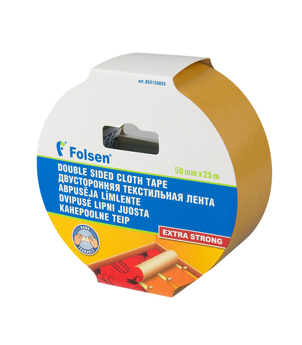 Лента клейкая монтажная Folsen двусторонняя тканевая 50 мм 25 м