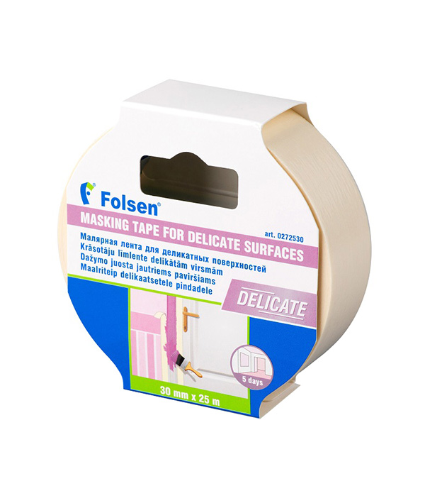 Лента малярная Folsen для деликатных поверхностей белая 30 мм 25 м