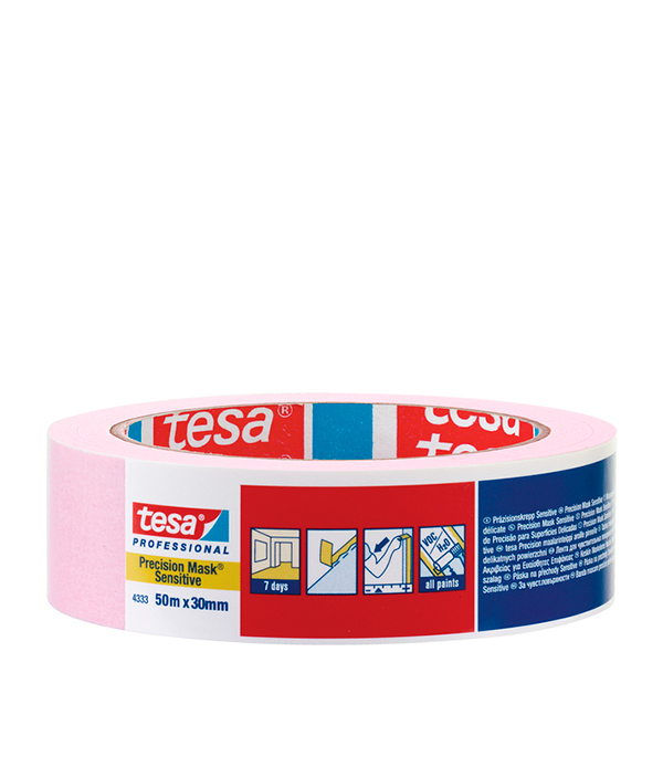 Лента малярная Tesa для деликатных поверхностей розовая 30 мм 50 м