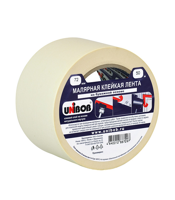 Лента малярная Unibob бежевая 72 мм 50 м