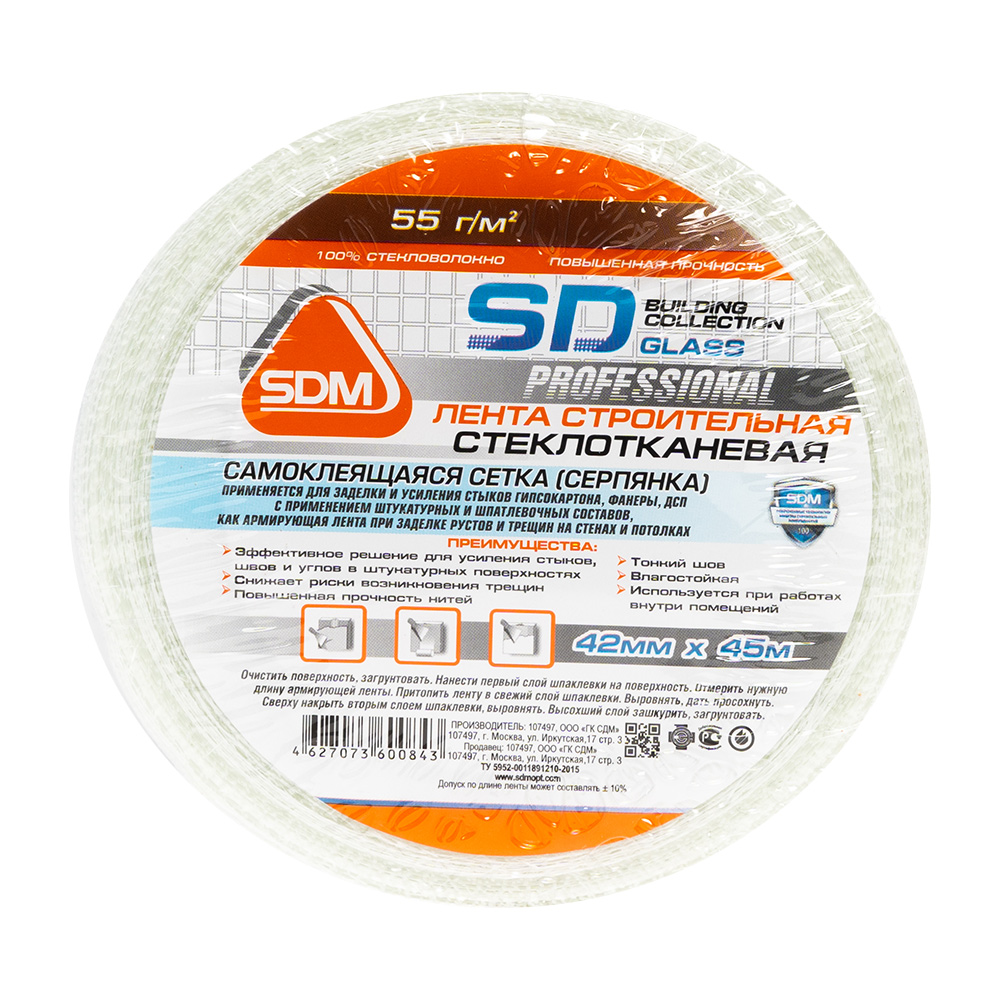 Лента стеклотканевая самоклеящаяся SD-GLASS 42 мм 45 м Эконом