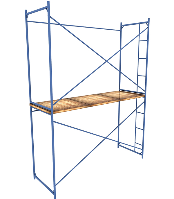 рама с лестницей – 2 шт, рама проходная – 2 шт, диагональные стяжки (длина 3 м) – 2 шт, горизонтальная связь (длина 3 м) – 2 шт, пята опорная – 4 шт, опорная балка (длина 3 м) – 4 шт, щит деревянный (1,1 х 0,95 м) – 6 шт, кронштейн – 2 шт, анкерный болт – 2 шт.