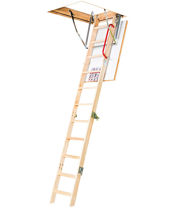Предназначена для безопасного и удобного доступа на чердак или в мансарду. rnЛестница складная чердачная состоит из четырех секций. Изготовлена из сосны, укомплектована утепленной крышкой люка, облицованной ДВП белого цвета. По периметру крышки люка установлен контур уплотнителя, который обеспечивает высокую степень герметичности. Лестница продается в собранном виде и готова к установке. Монтаж производится путем подвешивания лестницы любым удобным способом над проемом, выравнивается по уровню и фиксируется саморезами в количестве 8 шт. (в комплект не входят). Если высота в помещении меньше высоты лестницы, то нижнюю часть лестницы можно отпилить до необходимого размера.