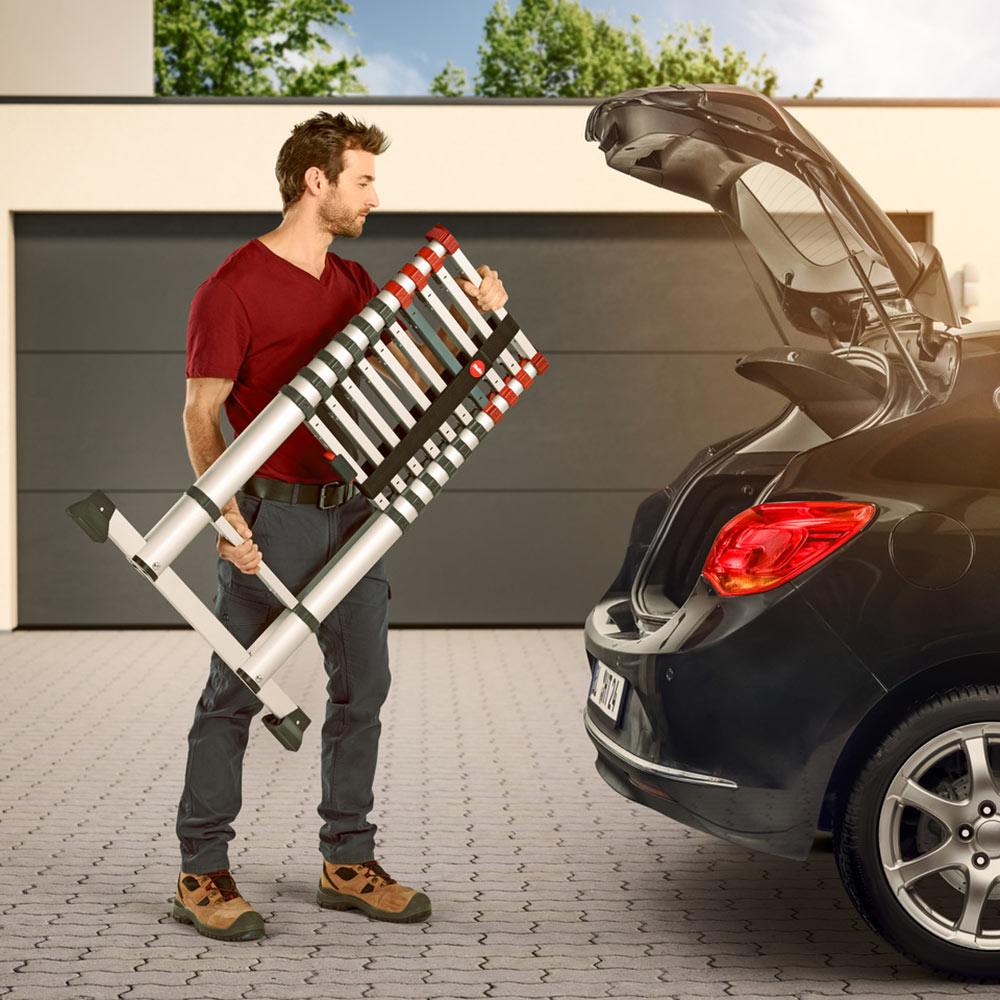Предназначена для бытового и промышленного использования. Алюминиевая телескопическая лестница благодаря выдвигающимся 13 ти ступеням обеспечивает оптимальную регулировку высоты и компактно складывается для транспортировки и хранения. В сложенном состоянии ступени имеют достаточное безопасное расстояние между собой, что устраняет риск защемления пальцев при переноске. Уникальный способ блокировки позволяет управлять лестницей одной рукой. Можно регулировать общую высоту путем выдвижения отдельных ступеней.