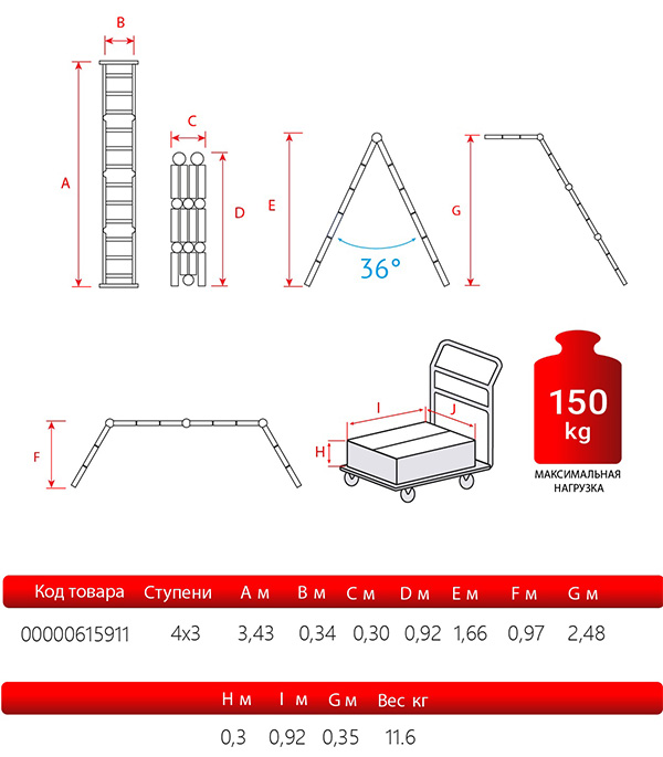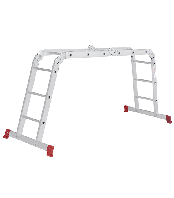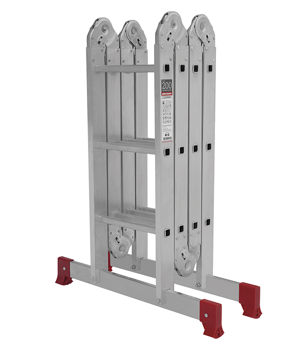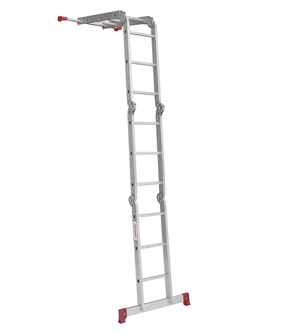 Предназначена для выполнения строительных, ремонтных, отделочных или иных видов работ, когда необходимо произвести какие-либо действия на высоте. Может использоваться как приставная или свободностоящая лестница, а также как рабочий помост. Лестница техническая алюминиевая 4-х секционная, в каждой секции 3 ступеней. Фиксация и устойчивость обеспечиваются широкими поперечными траверсами. Регулировка положения осуществляется с помощью стальных шарниров. Рабочая высота – это параметр, рассчитываемый путем сложения высоты верхней секции лестницы/стремянки и роста человека с вытянутой вверх рукой (в среднем, два метра).