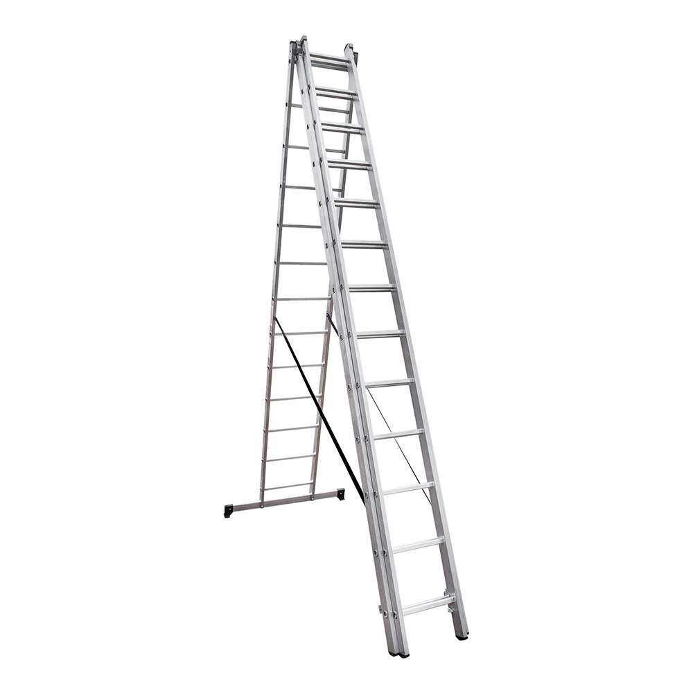 Предназначена для выполнения строительных, ремонтных, отделочных или иных видов работ, когда необходимо произвести какие-либо действия на высоте. Может использоваться как приставная и как свободностоящая лестница с выдвижной секцией.rnЛестница техническая алюминиевая 3-х секционная, в каждой секции 13 ступеней.rnРабочая высота – это параметр, рассчитываемый путем сложения высоты верхней секции лестницы/стремянки и роста человека с вытянутой вверх рукой (в среднем, два метра). rn