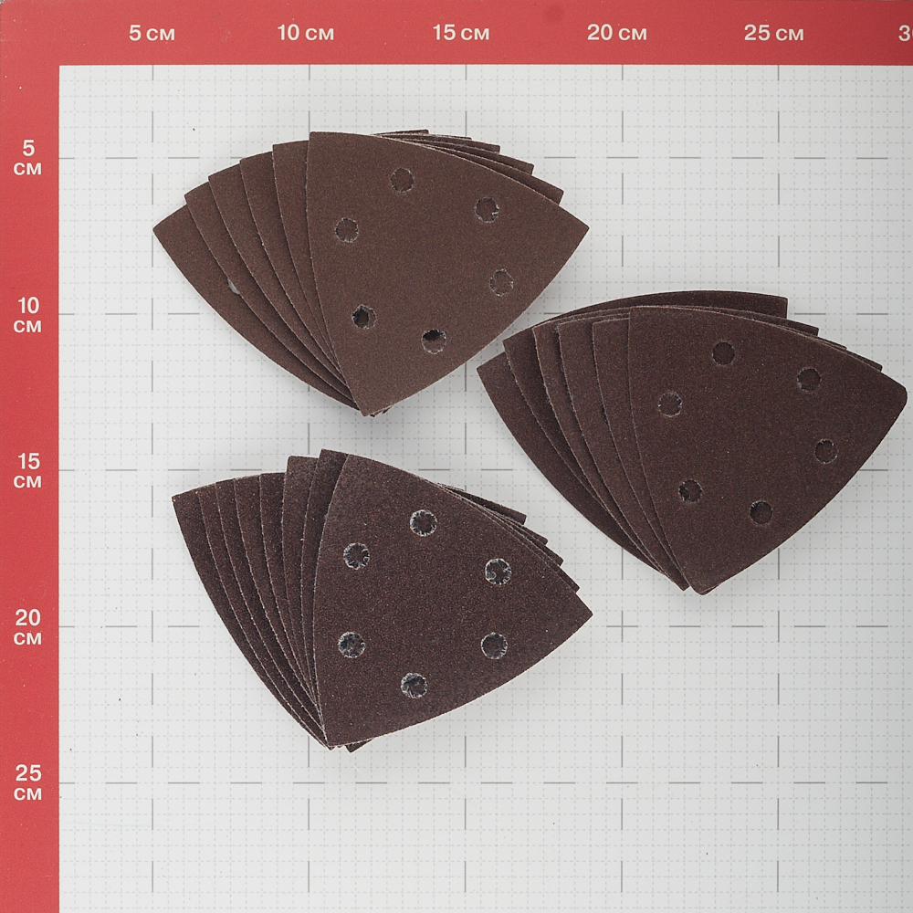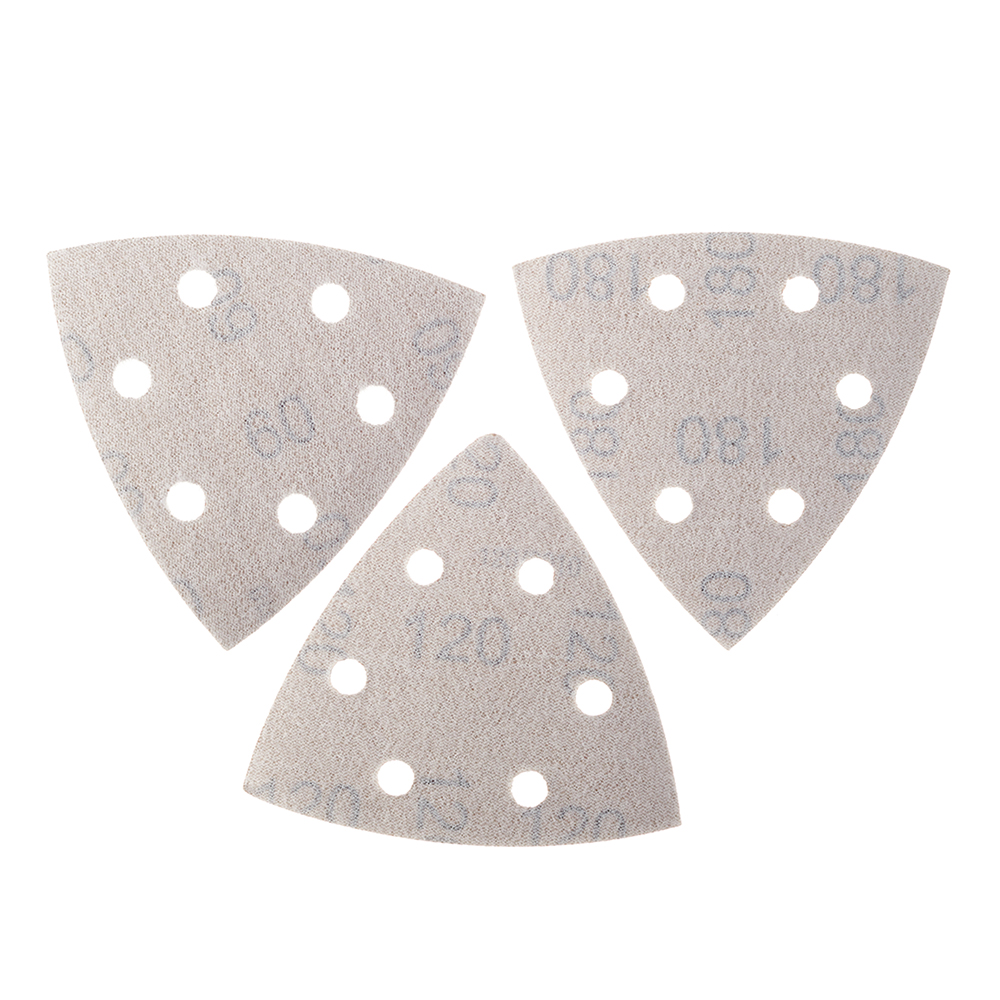 Листы шлифовальные треугольные самоприлипающие, «ДЕРЕВО и МЕТАЛЛ», электрокорунд, перфорированные.