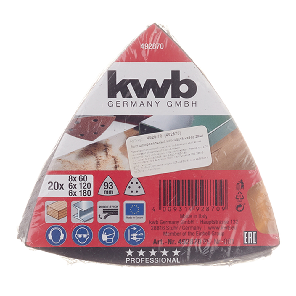 Лист шлифовальный для реноватора KWB (4928-70) треугольный P60/120/180 (20 шт.)
