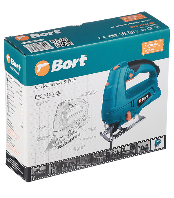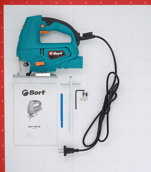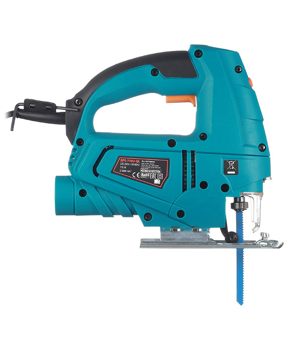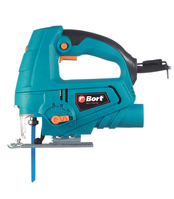 Лобзик электрический BPS-710U-QL имеет мощный двигатель и большую глубину пропила (80 мм в дереве и 10 мм в металле). rnДля удобства ведения продолжительной по времени работы модель снабжена клавишей-фиксатором кнопки включения.rnЛазерная направляющая способствует более точному пилению.rnМаятниковый ход для точной настройки инструмента в зависимости от материала.