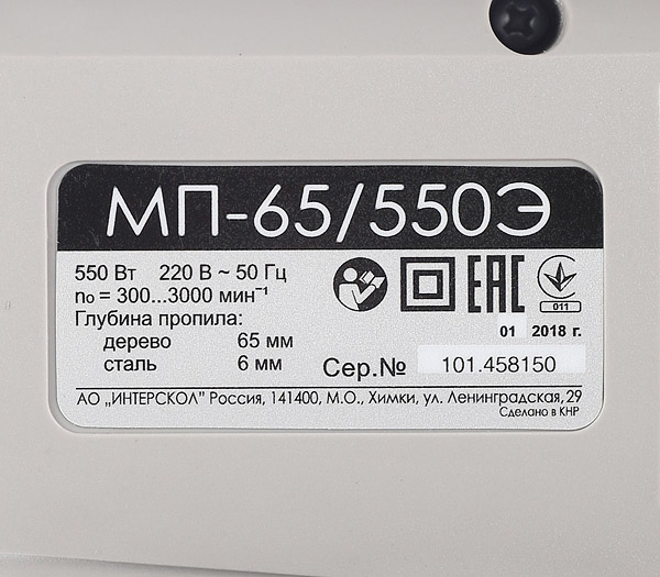 Лобзик электрический Интерскол МП-65/550Э (36.1.1.01) 550 Вт