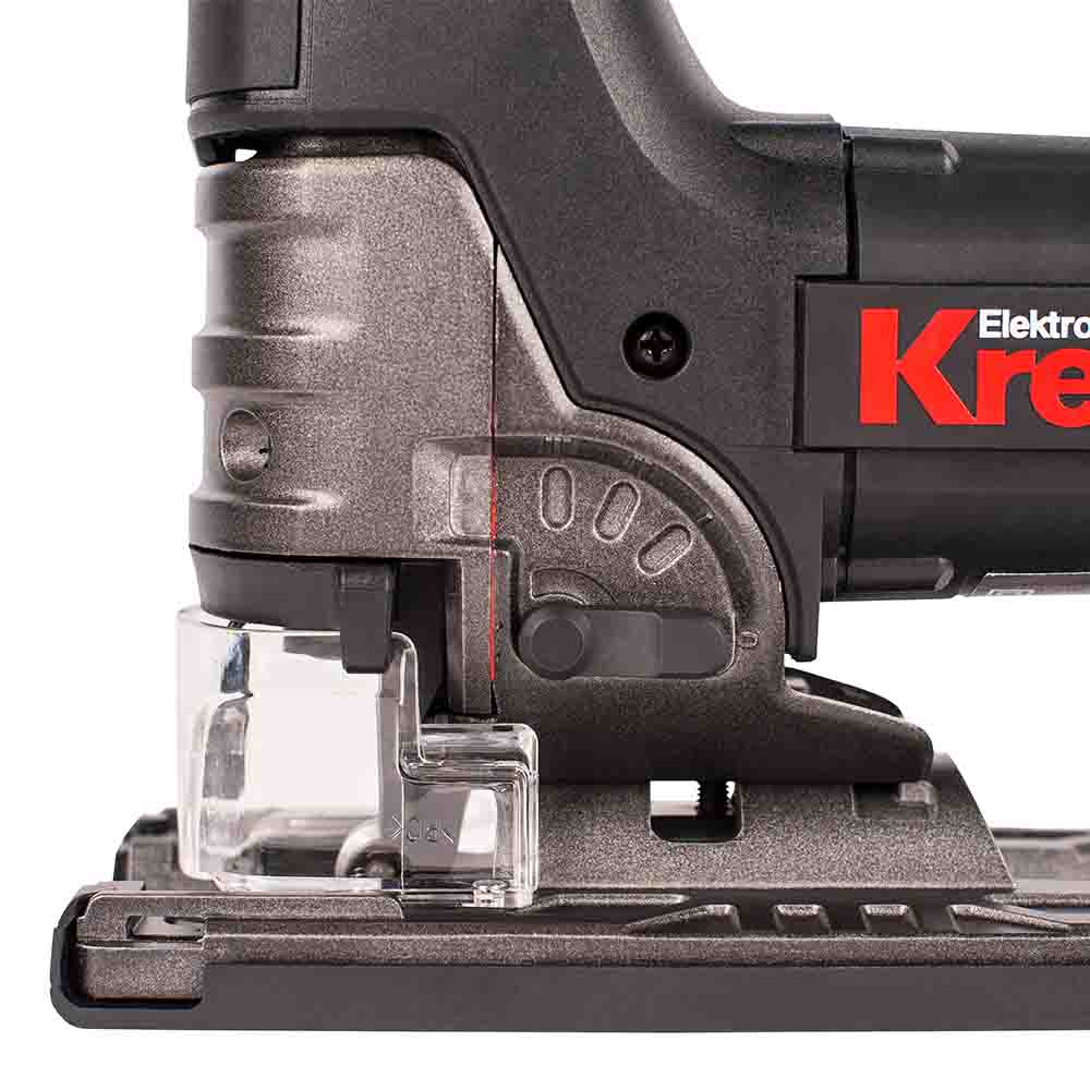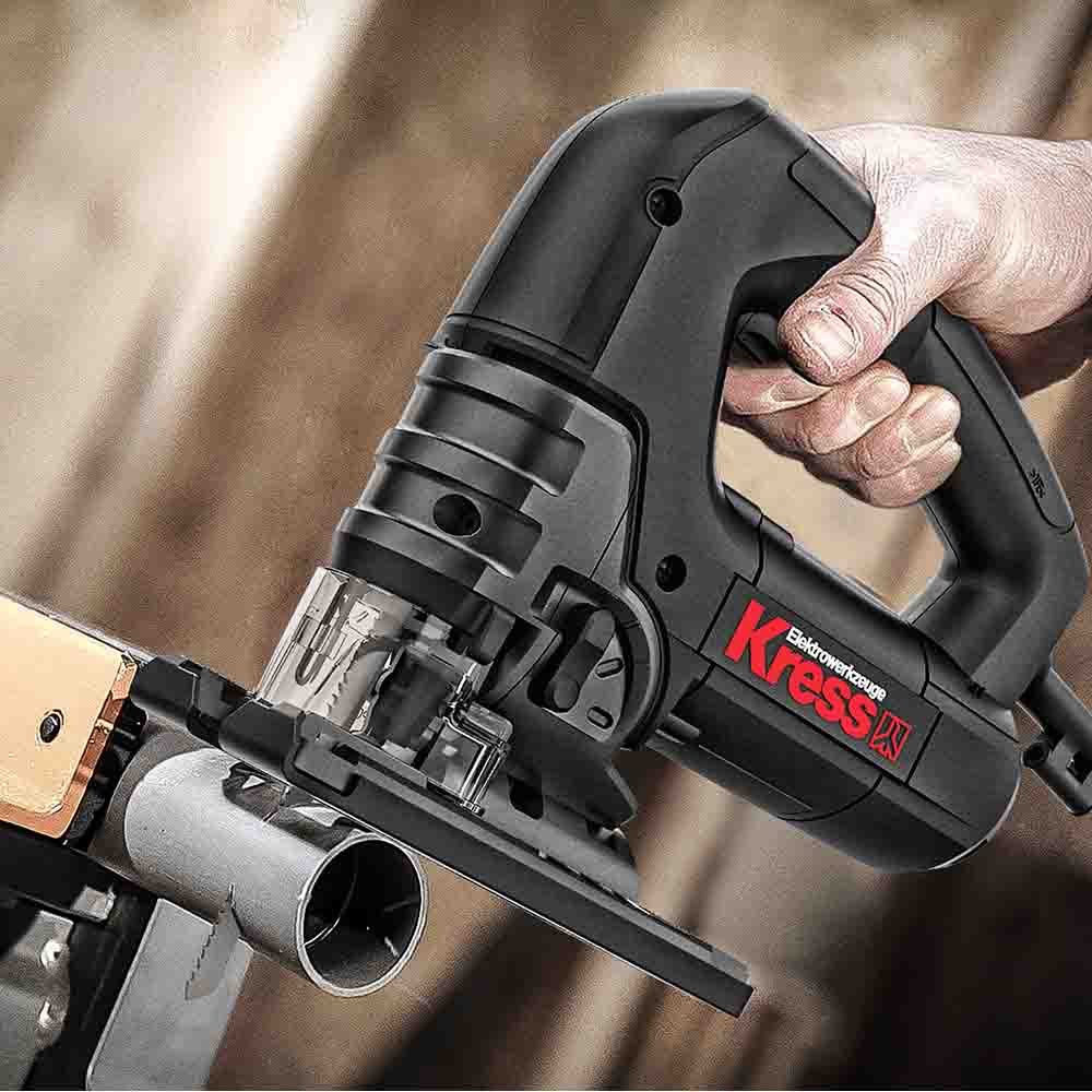 Компактный лобзик мощностью 720 Вт. Система сдува обеспечивает чистую рабочую поверхность и предотвращает попадание пыли в лицо.rnМаксимально точная работа благодаря опорной плите двойной конструкции.rnАлюминиевая платформа с пластиковой подошвой обеспечивает повышенную мягкость хода.