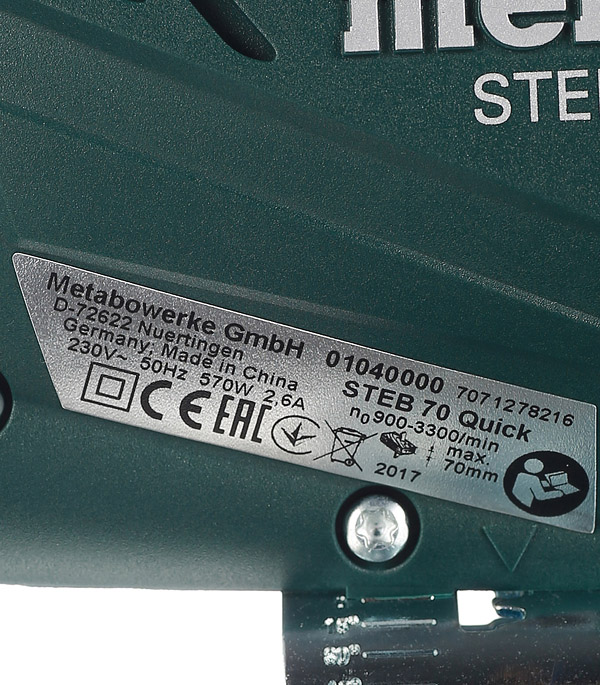 Лобзик электрический Metabo STEB 70 Quick (601040000) 570 Вт