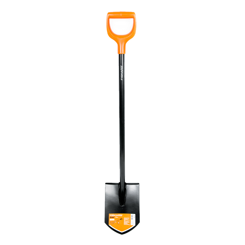 Серия инструментов Fiskars Solid™ предназначена для продолжительной работы в саду. Эти инструменты вас не подведут. rn Заточенное лезвие позволяет легко перекапывать и перерезать корни.rn Хорошо подходит для копания каменистой, глинистой и твёрдой почвы.rn Эргономичная рукоятка в форме буквы D обеспечивает комфортный захват. Ручка подойдет для руки любого размера; для работы в перчатках или без.rn Надежный и прочный стальной черенок круглого сечения.rn Сварное соединение между лезвиям и черенком обеспечивает надежность.rn Использование борсодержащей стали придает лопате дополнительную жесткость и обеспечивает легкое проникновение в почву.