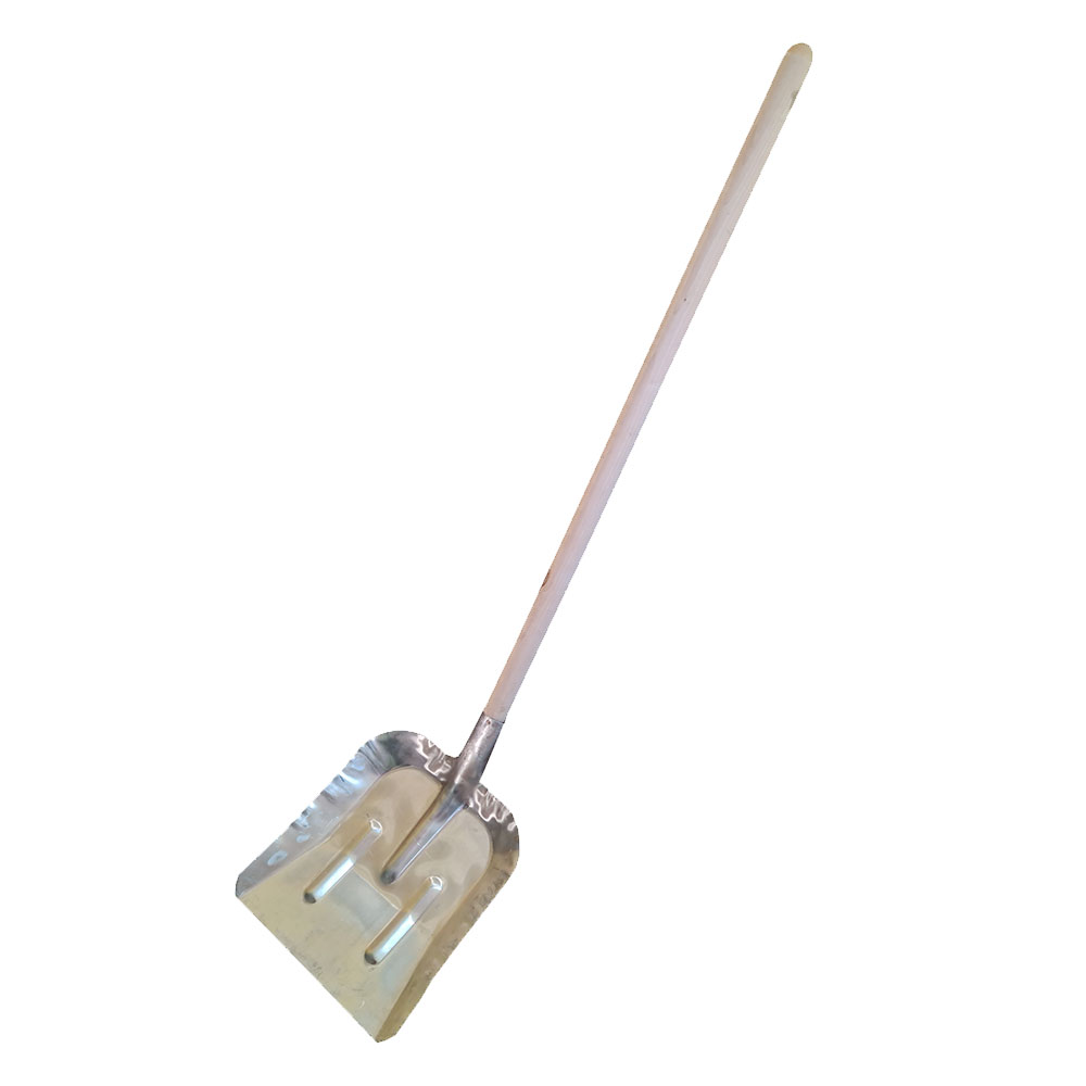 Лопата снегоуборпочная оборудована деревянным черенком. Применяется для очистки придомовой территории от снега. Изготовлена из оцинкованной стали.
