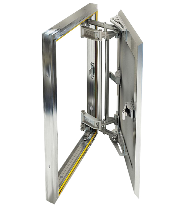 рама – алюминий, дверца – влагостойкий гипсоволокнистый лист, уплотнитель – силикон.