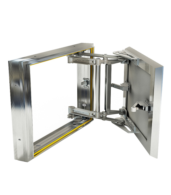 Предназначен для скрытого доступа к инженерным, вентиляционным, сантехническим, электрическим коммуникациям, а также к скрытым нишам. Устанавливается в любые подготовленные к монтажу проёмы из кирпича, бетона, гипсокартона, дерева. Возможна отделка практически любыми отделочными материалами толщиной до 20 мм: плитка, керамогранит, керлит, зеркало и т.д. Силиконовый уплотнитель защищает от влаги и неприятных запахов. Не требует подрезки плитки, потому как оклеивается отделочными материалами внахлест, что позволяет сохранять раскладку на люке идентичной раскладке материалов на остальной части стены, оставляя люк невидимым. Открывается нажатием, закрывается одним движением. За счет запатентованной системы умной петли, открывается и закрывается по заданной траектории, автоматически центрируя дверцу относительно проема, что исключает скалывание краев отделочных материалов. Со стороны петли от края плитки на дверце до соседней стены должно быть не менее 60 мм. rnРегулировка петли по ширине и высоте.rnВозможна установка газовых амортизаторов для автоматического открывания дверцы.