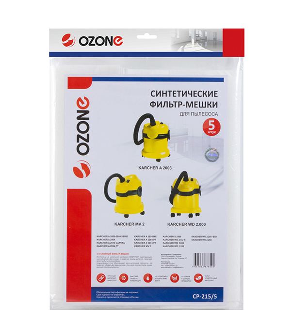 Мешок для пылесоса OZONE (CP-215/5) 17 л синтетическая ткань (5 шт.)