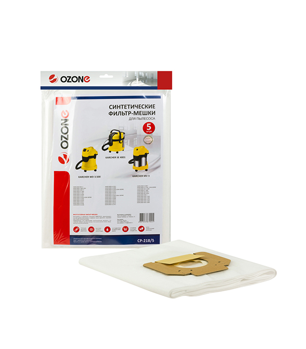 Сменные фильтр-мешки CP-218/5 для пылесосов Karcher WD3, 5 штук. Синтетические многослойные. Не боятся мокрой пыли, острых предметов. Продлевают срок службы пылесоса.