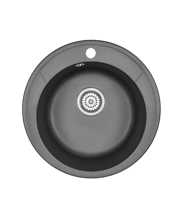 Мойка для кухни GRANULA Standart 480х480х190 мм врезная круглая без крыла кварц черный