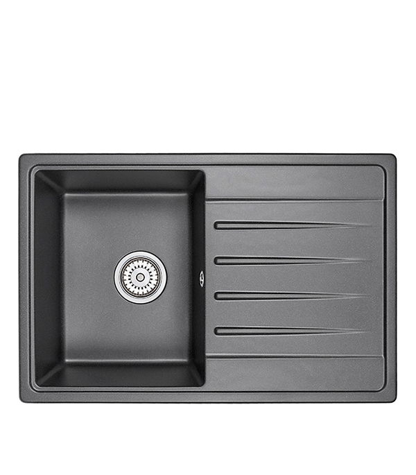 Мойка для кухни GRANULA Standart 760х500х200 мм врезная прямоугольная с крылом кварц черный