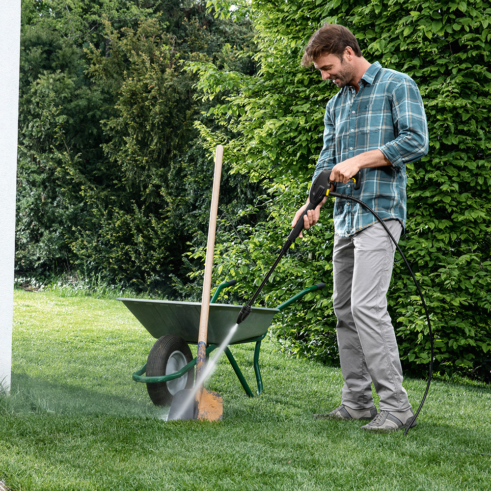 Будь то ступени, покрытые мхом, стены или грязный садовый инвентарь, мойка высокого давления K 2 Universal Edition с грязевой фрезой мгновенно справится с загрязнениями. Компактное устройство идеально подходит для любых загрязнений. Вращающаяся струя грязевой фрезы удаляет даже стойкую грязь. Благодаря небольшому весу и встроенной удобной ручке для переноски вы можете легко транспортировать K 2 Universal Edition туда, куда вам нужно. Система Quick Connect обеспечивает дополнительное удобство, так как ее быстрое соединение позволяет подсоединять и отсоединять шланг высокого давления длиной три метра от устройства и легко запускать пистолет. Все входящие в комплект аксессуары хранятся непосредственно на мойке. Это стало возможным благодаря удобным креплениям на устройстве. Даже кабель питания может быть аккуратно уложен во встроенный отсек для кабеля.