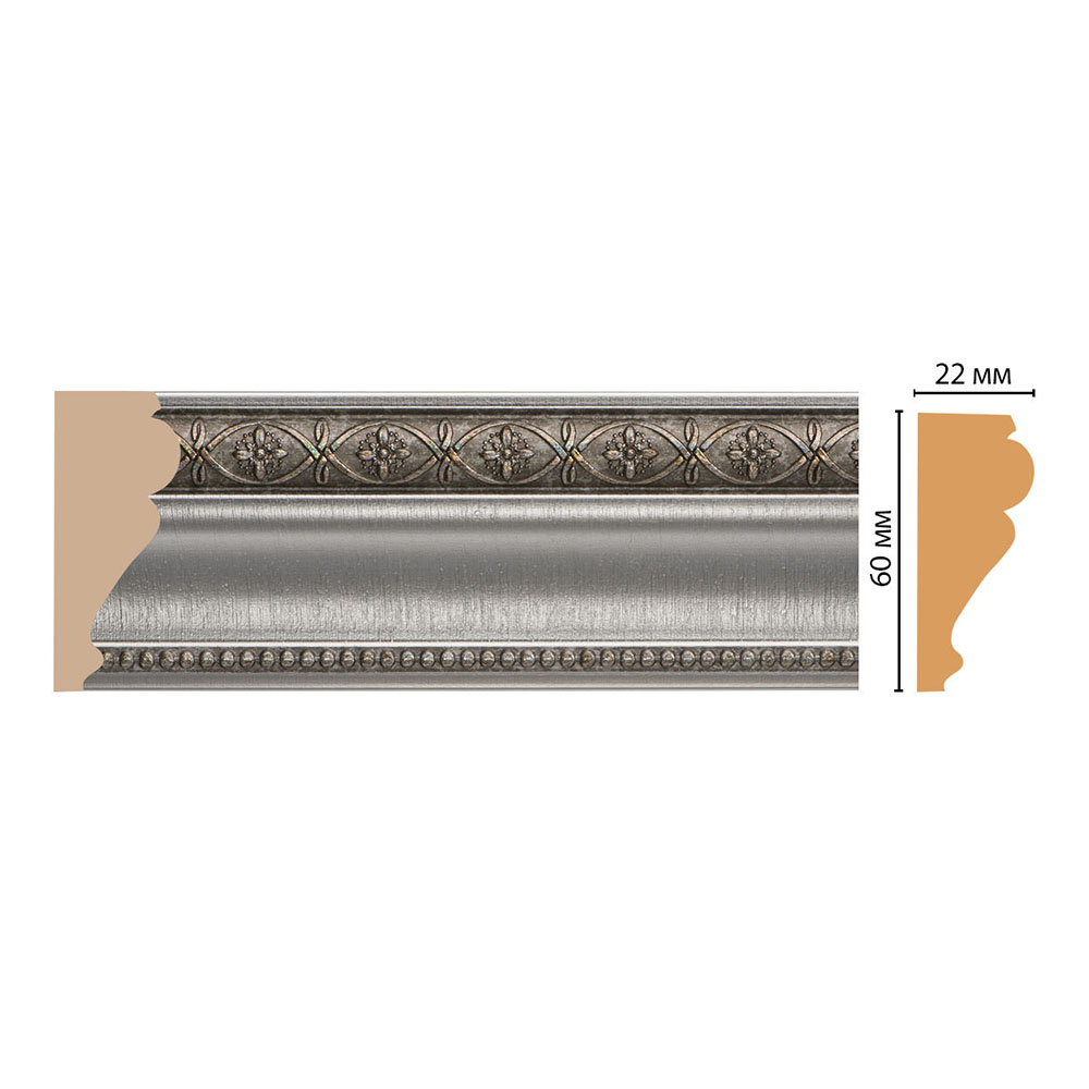 Молдинг из дюрополимера ударопрочный 60х22х2400 мм Decomaster серебристый металлик