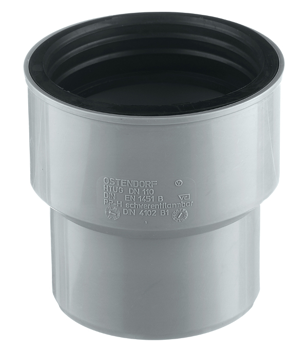 Муфта Ostendorf d110 мм пластиковая переходная на чугун с сальником для внутренней канализации