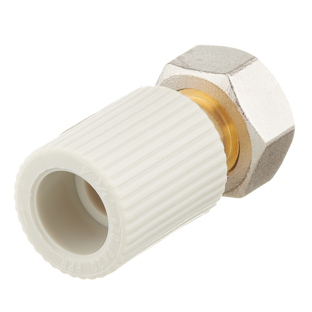 Предназначена для создания разъемного соединения полипропиленовой трубы 20-го диаметра с различной запорно-распределительной арматурой (коллекторы, коллекторные группы, узлы нижнего подключения и пр.), имеющей посадочное место «под евроконус». Состоит из полипропиленовой части, которая присоединяется к трубе методом диффузионной сварки. Латунной части имеющей накидную гайку с внутренней резьбой 3/4(20 мм) и конусовидным посадочным местом (так называемый «евроконус»).