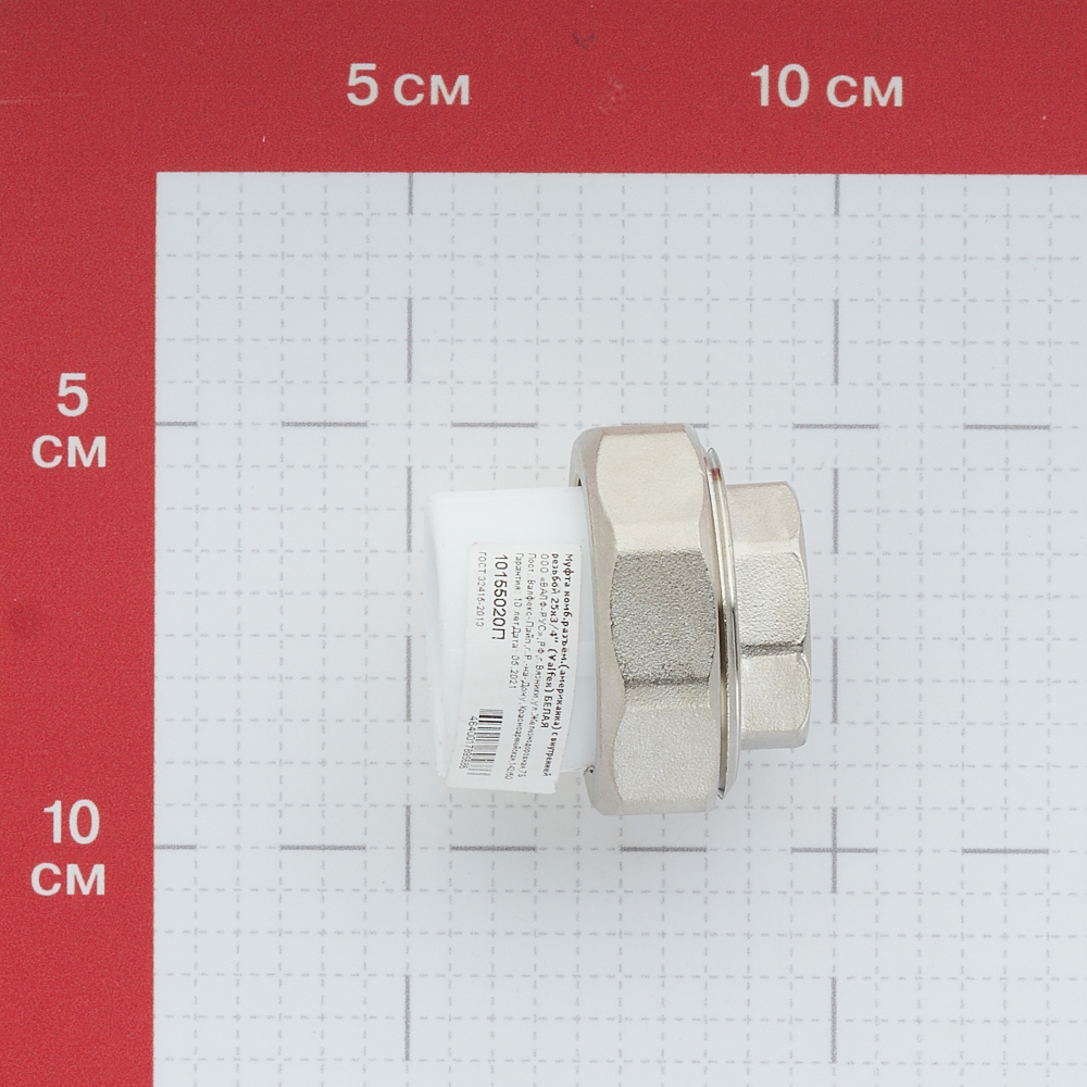 Предназначена для соединения полипропиленовой трубы диаметром 25 мм и фитинга диаметром 3/4с наружной резьбой путем стягивания. Применяется когда необходимо соединить два неподвижных элемента трубопровода. rnПринцип соединения – разъемное с уплотнительным кольцом. Герметичность и надежность обеспечивает полукруглая прокладка из EPDM, размещенная в латунном переходнике, имеющем проточку.rnПлоская поверхность на полипропиленовой муфте, контактирующая с прокладкой, обеспечивает долговечность изделия.rnКачественная резьба позволяет без особых усилий производить монтаж без риска повредить соединение.rnСоединения труб и фитингов должны выполняться методом термической полифузионной муфтовой сварки с помощью специального сварочного аппарата.rnКомбинированные полипропиленовые фитинги с трубной резьбой 1/23/4” и 1 дюйма, не имеющих ответной части «под ключ», следует соединять с ответной резьбой другого фитинга без вспомогательного инструмента, вручную или с использованием специального ленточного ключа, обеспечивающего обхват по всей окружности фитинга.