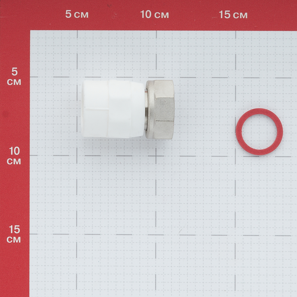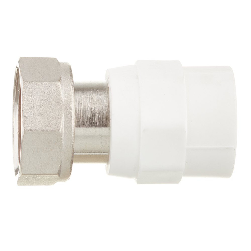 Предназначен для соединения полипропиленовой трубы и компонента инженерной системы с резьбовым подключением. Монтаж осуществляется с помощью накидной гайки. Резьба – внутренняя трубная по ГОСТу 6357. Предусмотрен участок корпуса под гаечный или трубный рычажный ключ.